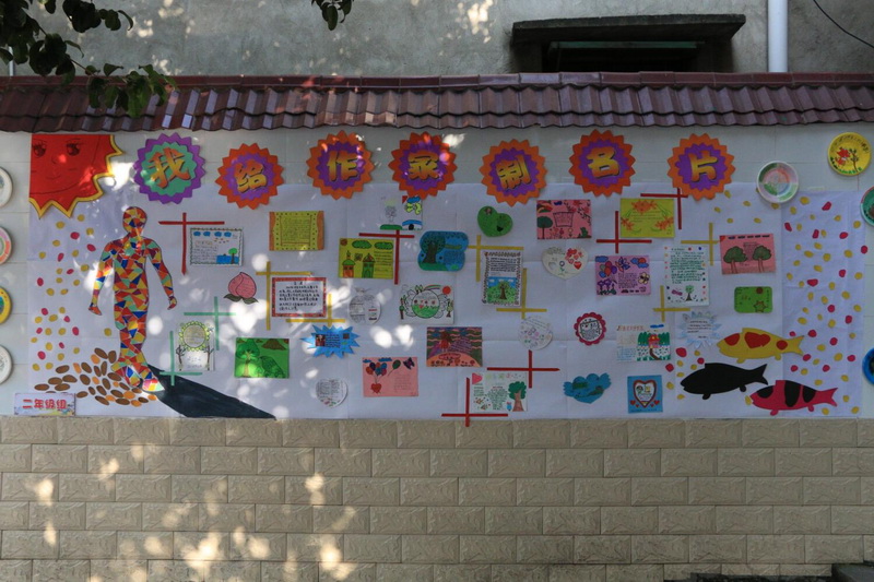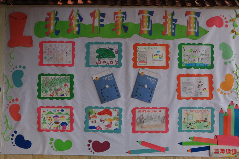 随后,孩子们把阅读感受融入到“我给作家说句话”、“我给作家制名片”、“我给作家画插画”、“我给作家写封信”、“我给作家制小报”和“我跟作家比写作”等作品中。