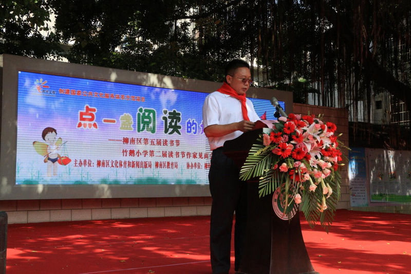 (文:何淑娟 图:申黎)2017年6月18日,连日的大雨已冲刷掉六月的暑热,“点一盏阅读的灯”柳南区第五届、竹鹅小学第二届读书节暨作家见面会在蓝天白云下如期举行。