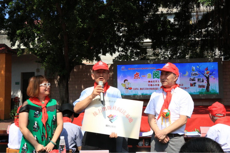 邬书林为竹鹅小学“接力出版社阅读基地”赠匾